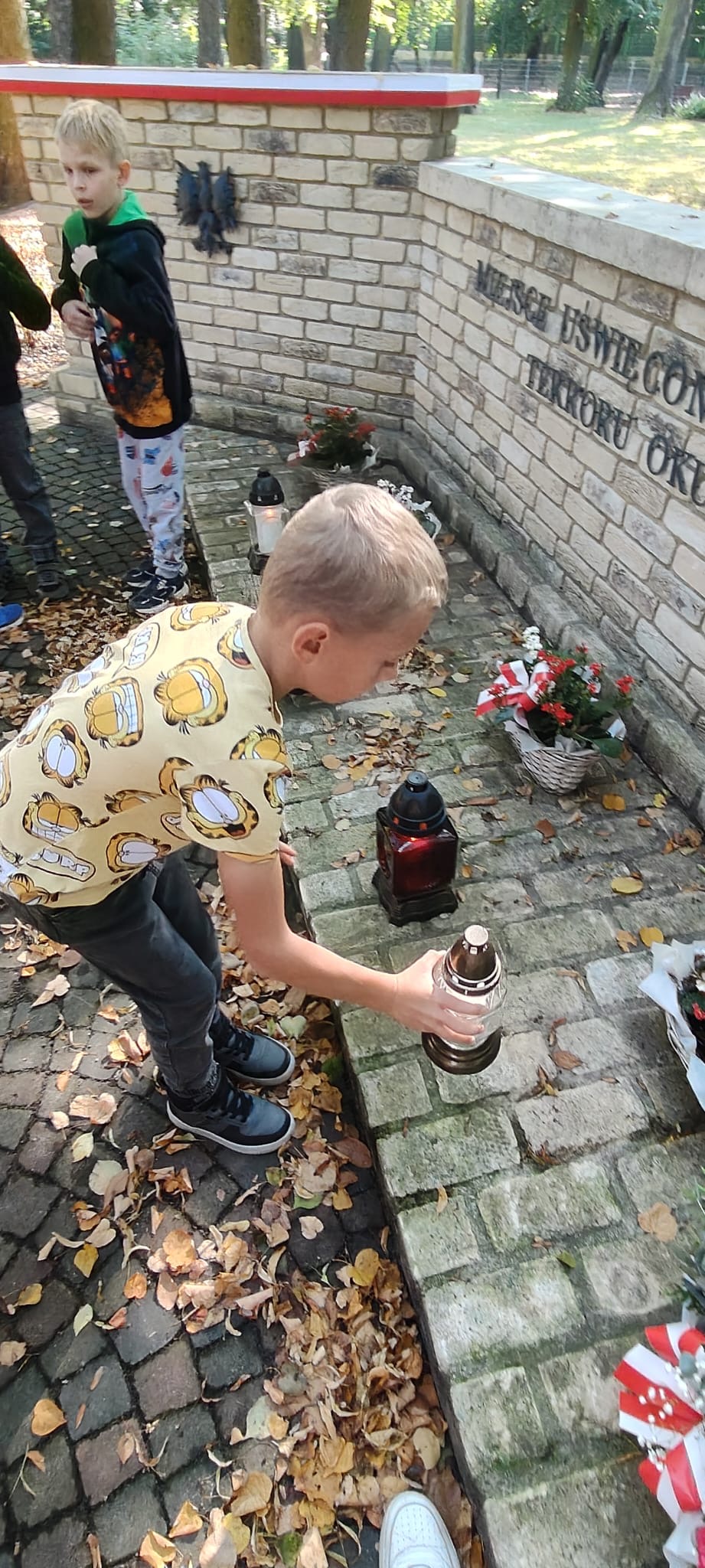 Kwiaty i znicze przed znajdującym się w parku miejskim pomnikiem poświęconym ofiarom terroru 1939-1945 pojawiają się regularnie. Przynoszą je zwykli mieszkańcy, a oprócz tego już od kilku lat w przekazywanie pamięci o lokalnej historii włączyła się też w szczególny sposób Szkoła Podstawowa nr 1 w Brwinowie. Ważne daty historyczne związane z II wojną światową są okazją do rozmowy z uczniami na temat przeszłości. 1 września przy pomniku nazywanym „Ścianą śmierci” pojawiła się delegacja nauczycieli, a 12 września – w rocznicę bitwy, która odbyła się 12 września 1939 r. w rejonie Brwinowa, Parzniewa i Otrębus – park odwiedziła grupa uczniów z nauczycielkami, aby złożyć kwiaty i znicze oraz porozmawiać o tym wydarzeniu. Minęło już 86 lat od walk stoczonych tutaj przez Wojsko Polskie chcące przebić się do okrążanej przez Niemców Warszawy. Głównymi siłami był 36 pułk piechoty Legii Akademickiej, którego imię nosi park miejski i o którym przypomina mieszkańcom pomnik stojący na Rynku w Brwinowie – głaz z żołnierskim hełmem, krzyż oraz replika karabinu CKM.