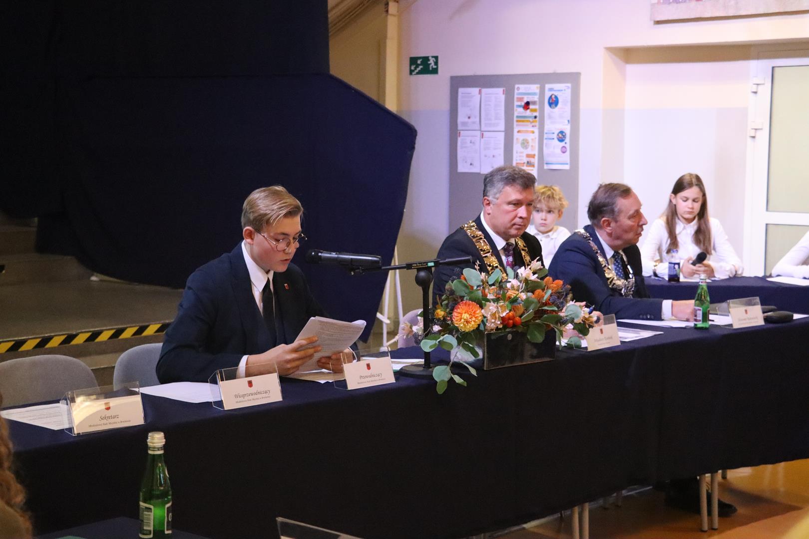 Uroczyste posiedzenie rozpoczął burmistrz Arkadiusz Kosiński, który pogratulował młodzieży i przedstawił wyniki wyborów pod względem frekwencji. Następnie przyjął ślubowanie od nowo wybranych radnych. Podczas wydarzenia młodzieżowi radni otrzymali dyplomy i symboliczne upominki z rąk burmistrza oraz przewodniczącego Rady Miejskiej Sławomira Rakowieckiego.