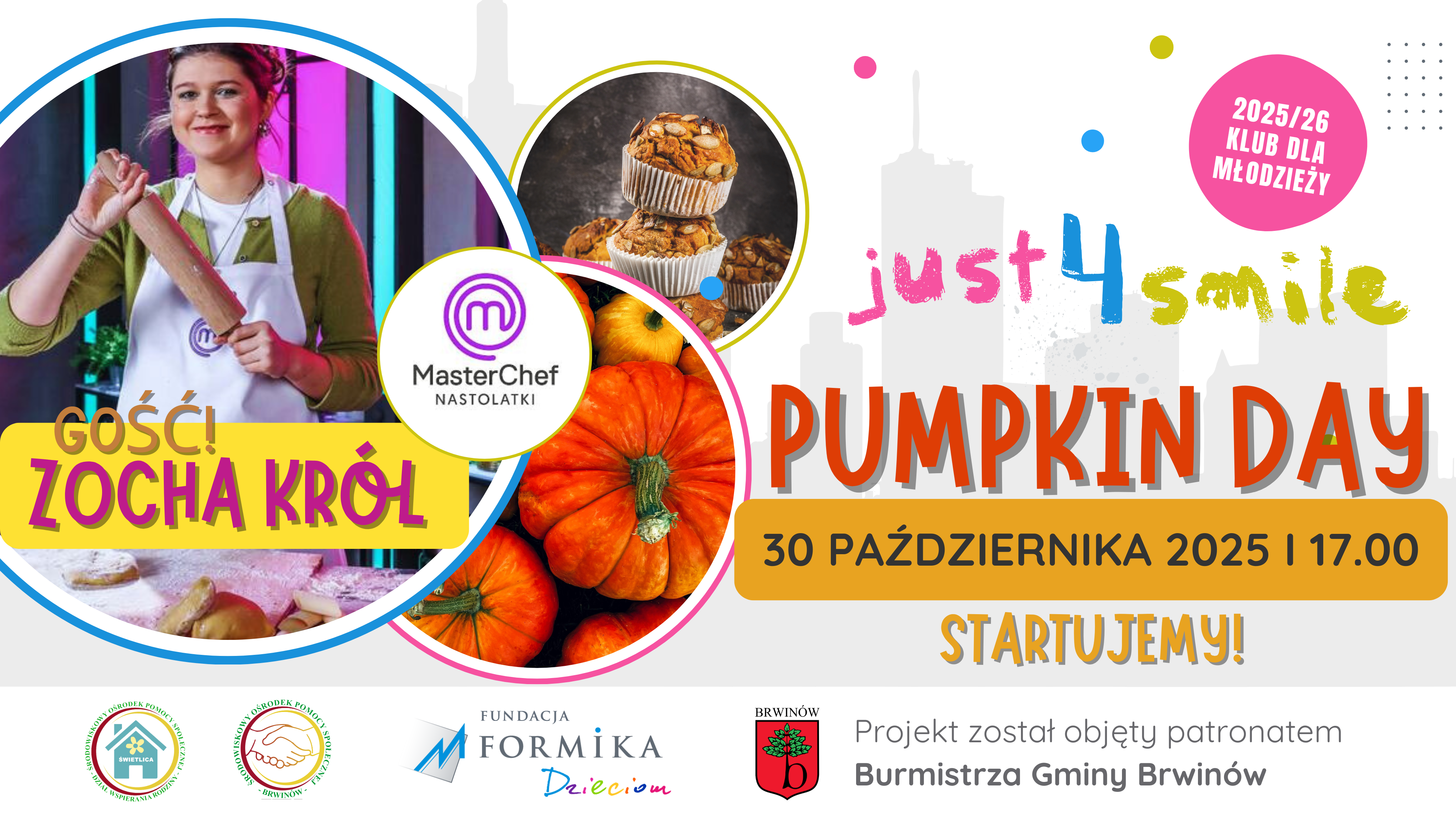 Po wakacyjnej przerwie, na dobry początek kolejnego roku działalności w świetlicy Just4Smile odbędzie się Festiwal Dyni – Pumpkin Day. W czwartek 30 października w godz. 17-19 odbędzie się wydarzenie, które będzie, jak zapowiadają organizatorzy, pełne smaku i dobrej energii. Gościem specjalnym będzie Zofia „Zocha” Król, 17-letnia finalistka tegorocznego programu MasterChef Nastolatki. Zocha pochodzi z Wieliczki koło Krakowa. Gotowanie i pieczenie jest jej wielką pasją. Specjalizuje się zwłaszcza w słodkich wypiekach, ciastach drożdżowych i tortach, ale na spotkaniu w Brwinowie zaprezentuje menu inspirowane jesienią. Tematem przewodnim będzie oczywiście dynia! Karmelizowana – z masełkiem miodowym chilli na kremie z sera labneh z ubijaną fetą – będzie przystawką. Danie główne to chrupiące gnocchi z sosem dyniowym, chorizo i prażoną szałwią, a na deser — pączki dyniowe z serkiem z orzechów laskowych w cukrze cynamonowym. Na spotkanie zostali też zaproszeni partnerzy i instytucjonalni przyjaciele świetlicy Just4Smile, ale Festiwal Dyni będzie wydarzeniem przede wszystkim dla młodzieży. Będzie muzyka, dobra zabawa, ale też strefa chill i integracja młodzieży.