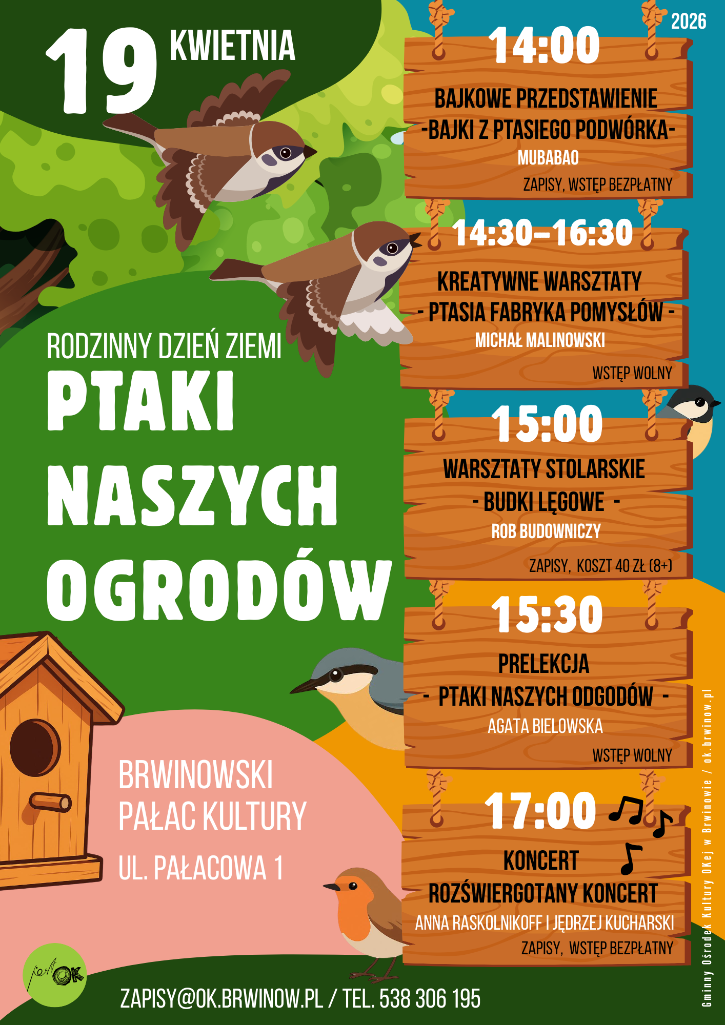 19 Kwi14:00Ptaki naszych ogrodów Brwinowski Pałac Kultury, ul. Pałacowa 1