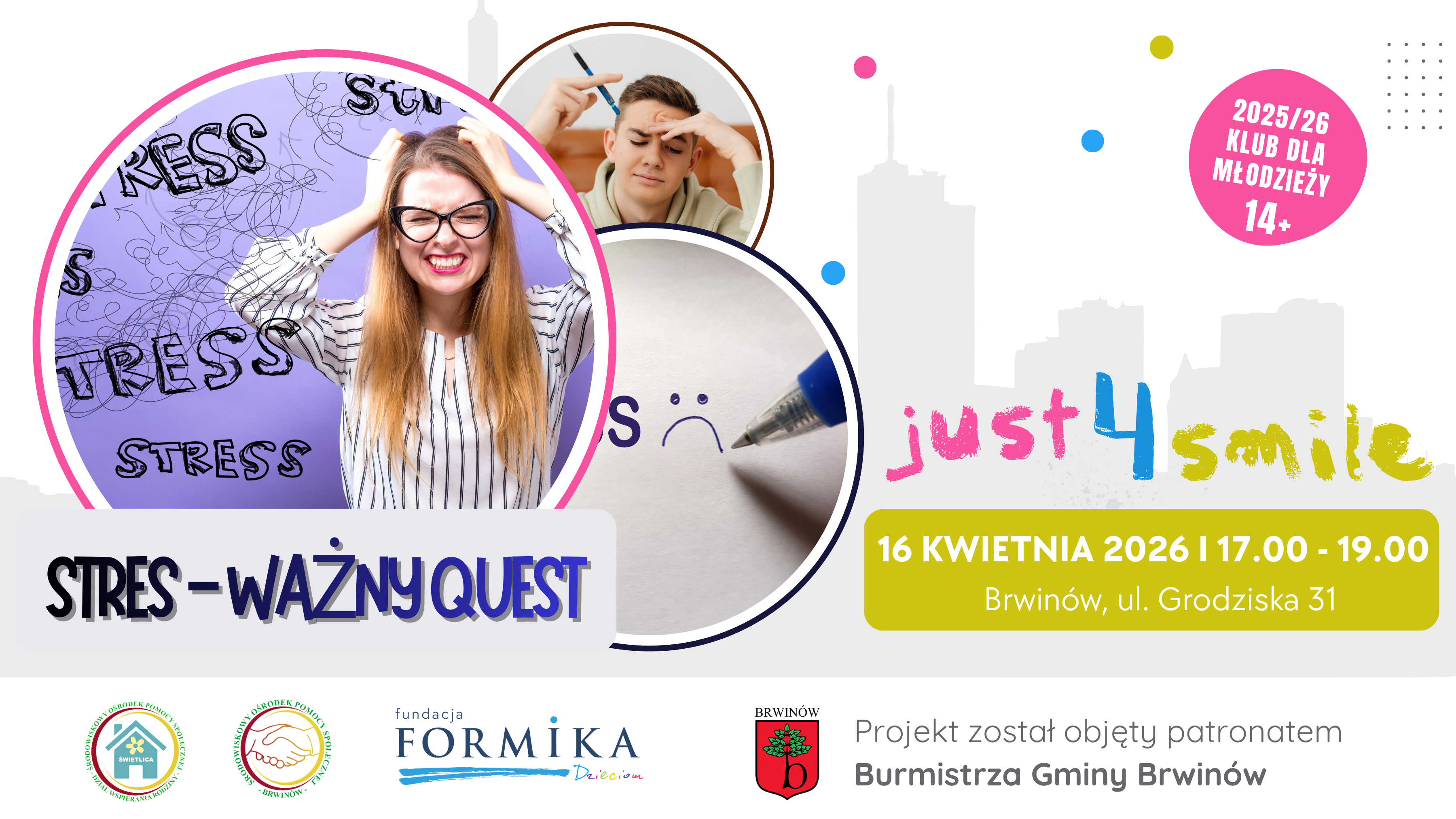 15 Kwi17:00 - 19:00Stres - ważny quest - spotkanie just4smile Świetlica ŚOPS, ul. Grodziska 31, Brwinów