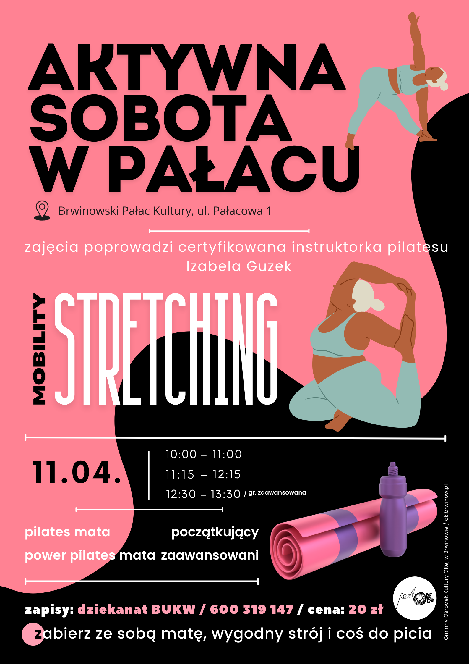 11 Kwi10:00Aktywna sobota w Pałacu - mobility stretching Brwinowski Pałac Kultury, l. Pałacowa 1, Brwinów