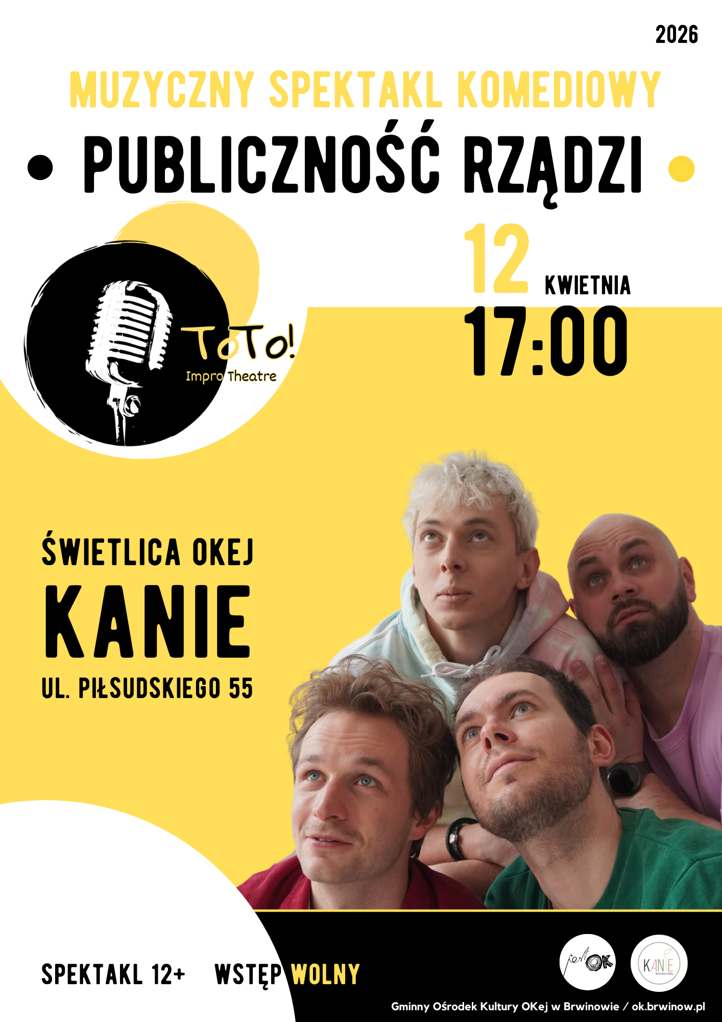 12 Kwi17:00Muzyczny spektakl komediowy - Publiczność Rządzi Świetlica w Kaniach, ul. Piłsudskiego 55