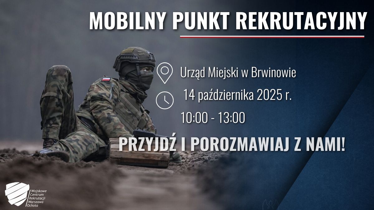 14 Paź10:00 - 13:00Mobilny Punkt Rekrutacyjny Wojskowego centrum Rekrutacji Warszawa Ochota Urząd Miejski w Brwinowie, ul. Grodziska 12