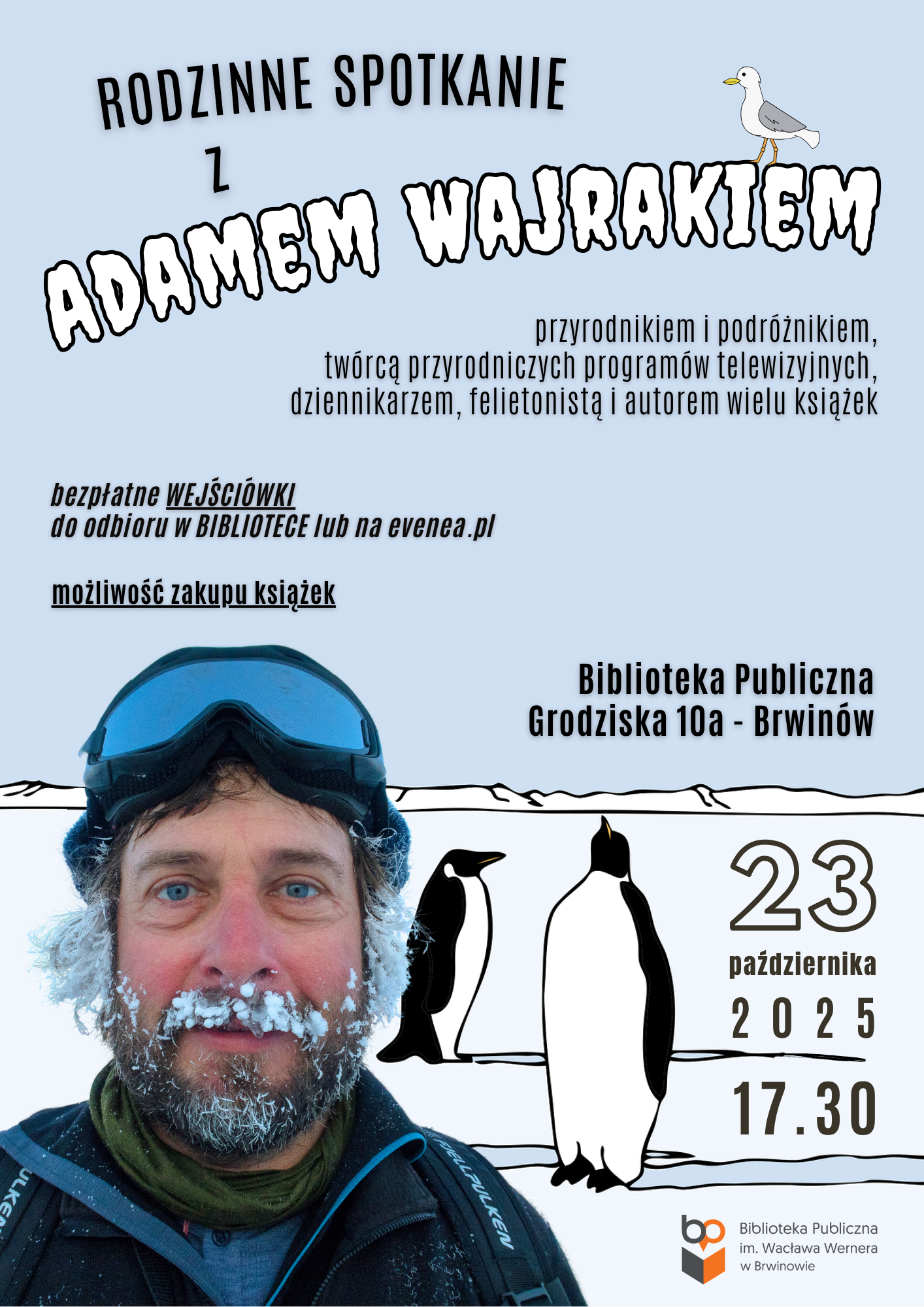 23 Paź17:30Rodzinne spotkanie z Adamem Wajrakiem Biblioteka Publiczna, ul. Grodziska 10A Brwinów
